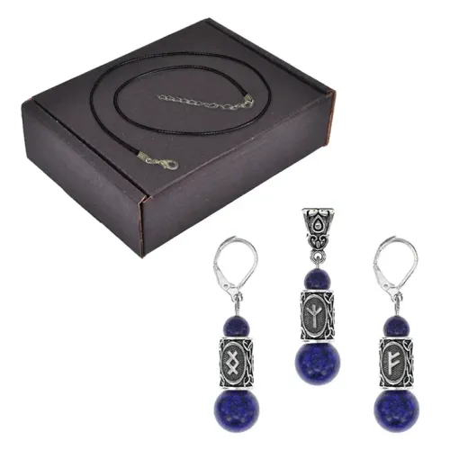 Назначение и особенности: Сувенирный комплект украшений. В коробке размещён QR-код с информацией о значениях рун и камней.