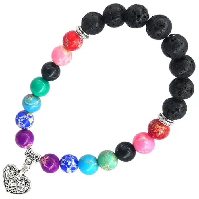 Браслет с подвеской в форме сердца из лавового камня с имитацией бирюзы.