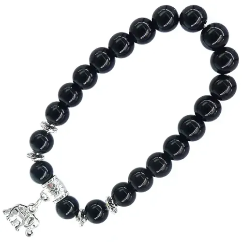 Браслет с подвеской в виде слона из чёрного агата.