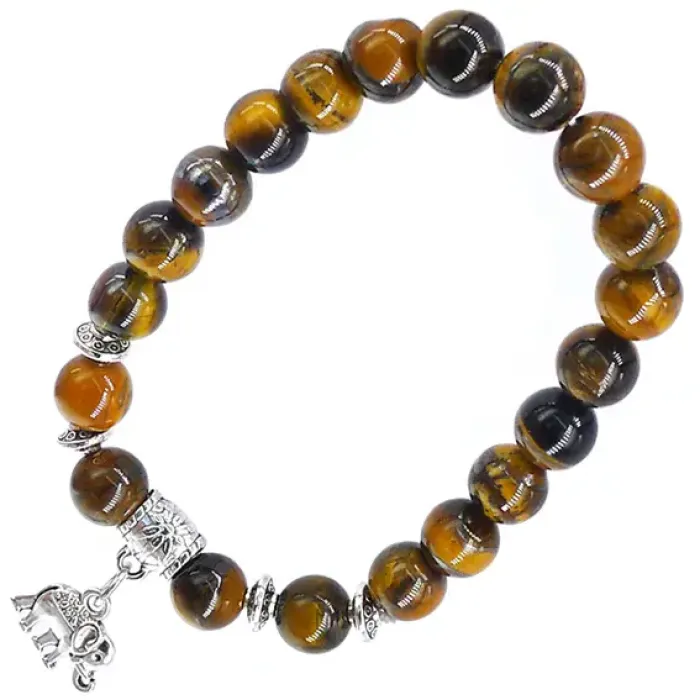 Браслет с подвеской в виде слона из камня тигровый глаз.