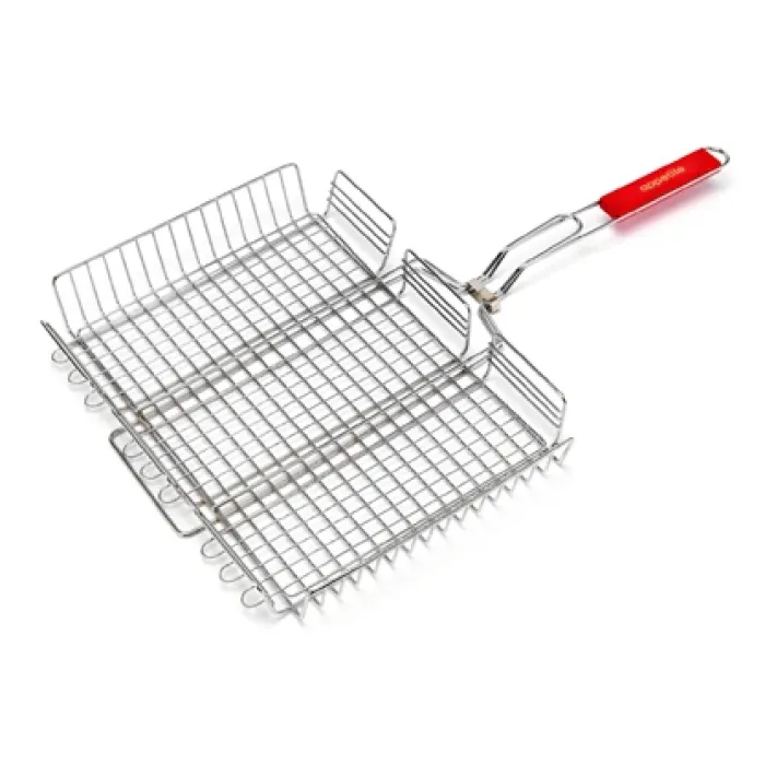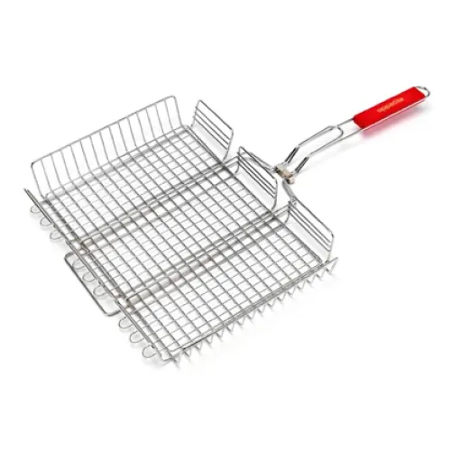 Решетка подходит для приготовления мяса, рыбы и овощей. Для поддержания внешнего вида рекомендуется очищать её после остывания. Конструкция с деревянной ручкой сочетается с классическим и утилитарным стилем оборудования для пикника или дачи.