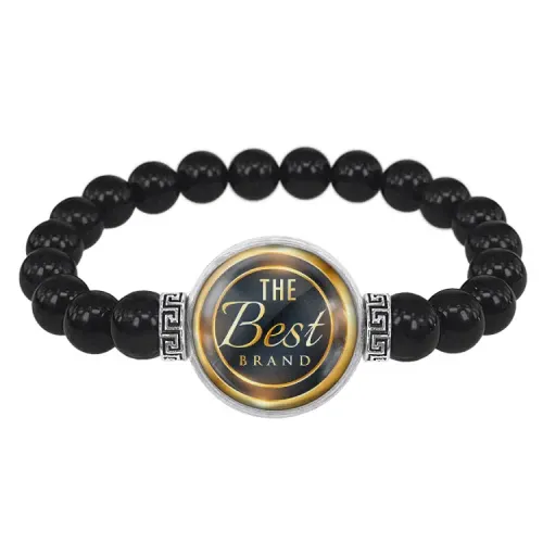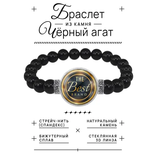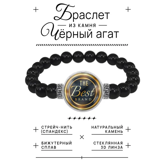 Стрейч-браслет из натурального чёрного агата с возможностью нанесения персонализированного изображения.