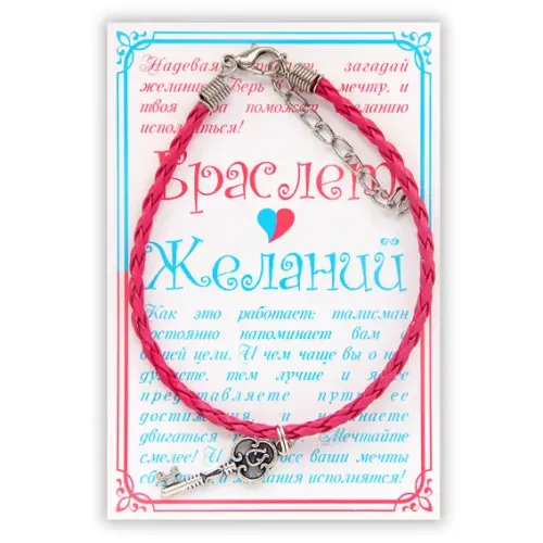 Браслет желаний Ключ к счастью (Ключ) малиновый BZH014