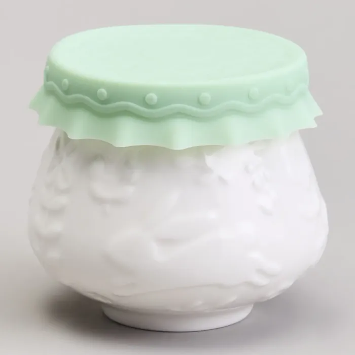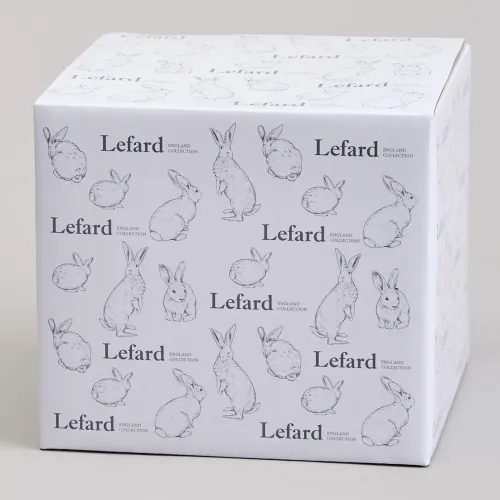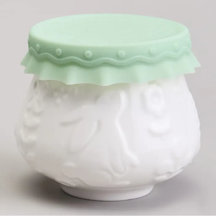 Банка выполнена из белоснежного фарфора — материала, отличающегося гигиеничностью и устойчивостью к воздействию пищевых сред. Корпус украшен декором с изображениями кроликов и цветов. Силиконовая крышка плотно прилегает к горловине, предотвращая высыпание содержимого и сохраняя его свойства.