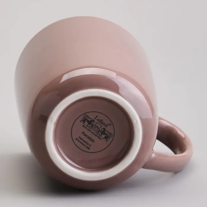 Кружка выполнена из упрочнённого фарфора, который устойчив к высоким температурам и механическим воздействиям. Материал проходит обжиг и покрывается глазурью для создания гладкой поверхности. Форма кружки с удобной ручкой обеспечивает комфортное использование.