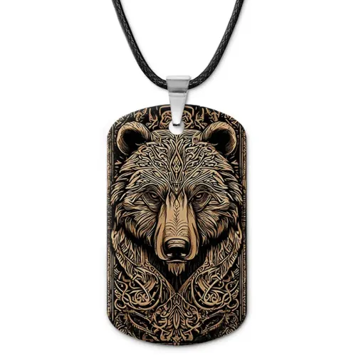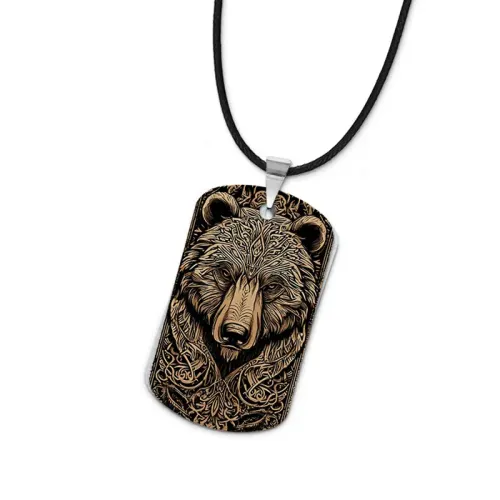 Кулон-жетон из алюминиевого сплава с двухсторонним цветным изображением медведя.