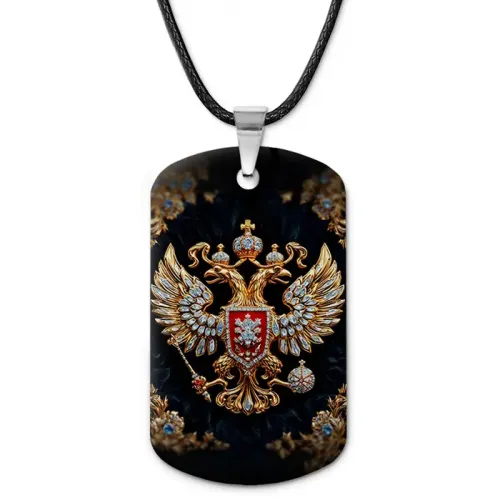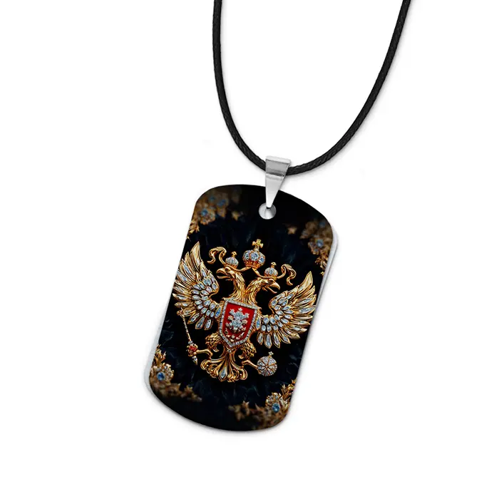 Двухсторонний кулон-жетон с изображением герба России. Изготовлен из алюминиевого сплава.