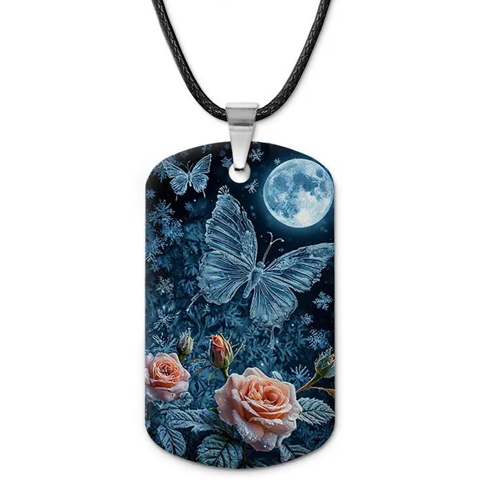 Кулон-жетон из алюминиевого сплава с двухсторонним изображением бабочки.