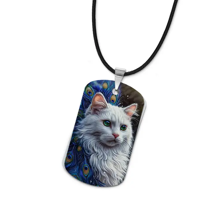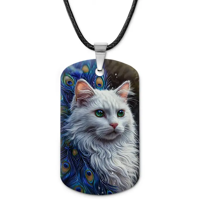 Кулон-жетон «Белая кошка» — сувенирный аксессуар из алюминиевого сплава с двусторонним цветным изображением.