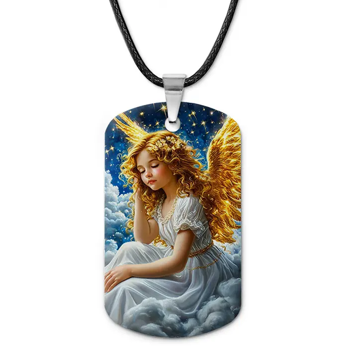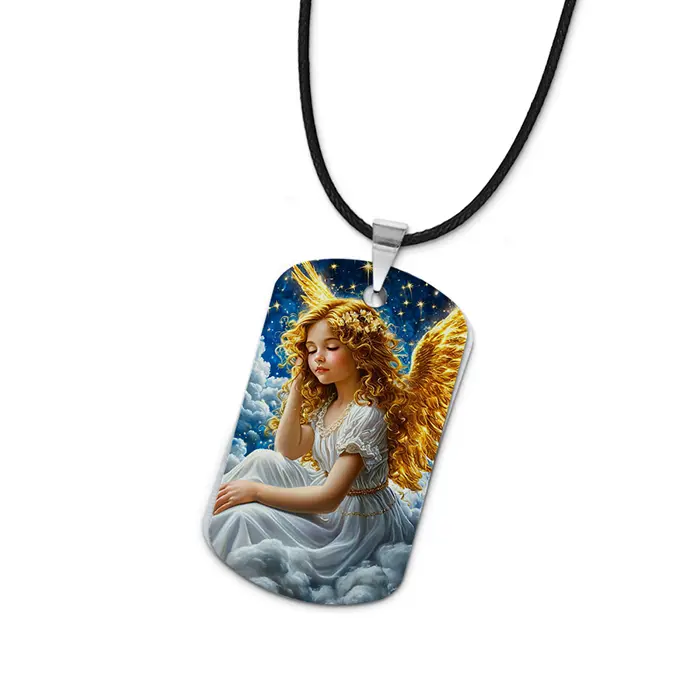 Кулон-жетон с изображением ангела из алюминиевого сплава. Двухсторонний, с цветным изображением.