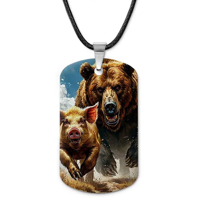 Кулон-жетон с тематикой охоты. Изготовлен из алюминиевого сплава, имеет двустороннее цветное изображение.