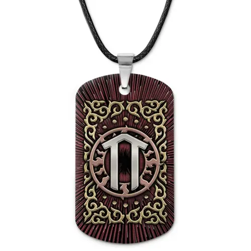 Двухсторонний кулон-жетон из алюминиевого сплава с цветным изображением славянской руны Ветер.