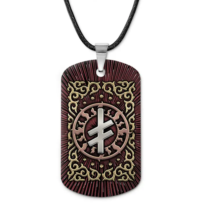Двухсторонний кулон-жетон из алюминиевого сплава с цветным изображением славянской руны Опора.