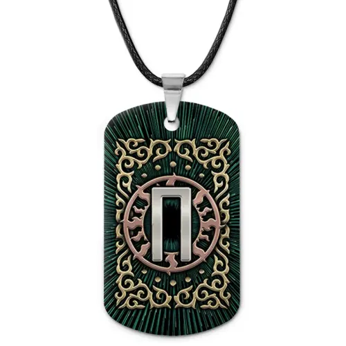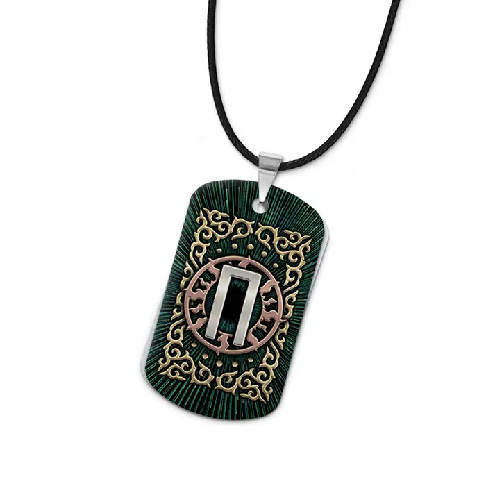 Двухсторонний кулон-жетон из алюминиевого сплава с цветным изображением славянской руны.