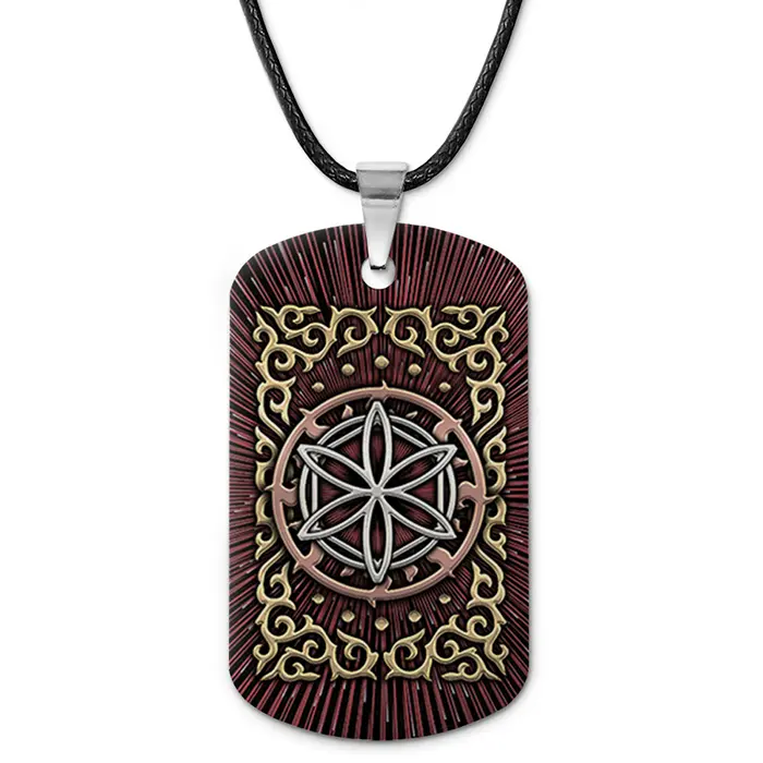Двухсторонний кулон-жетон из алюминиевого сплава с изображением Звезды Перуна.