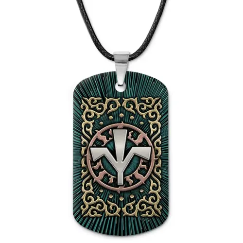 Двухсторонний кулон-жетон из алюминиевого сплава с цветным изображением славянского символа.