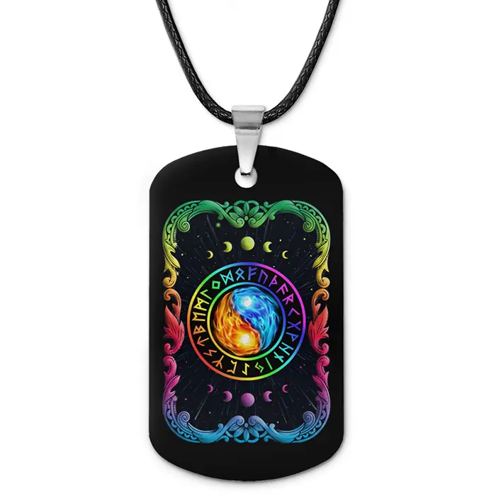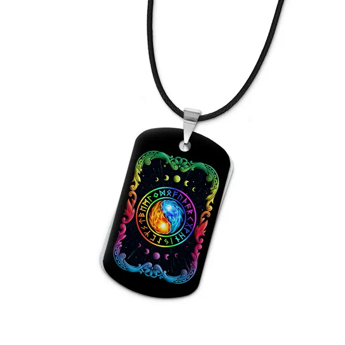 Двухсторонний кулон-жетон с изображением символа Инь-Ян, изготовленный из алюминиевого сплава.