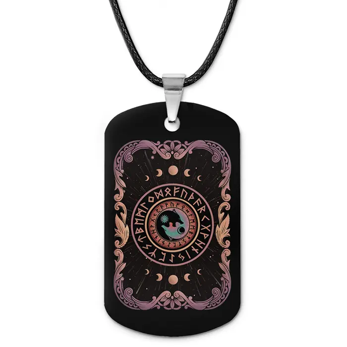 Двухсторонний кулон-жетон из алюминиевого сплава с цветным изображением волков в стиле Инь-Ян.