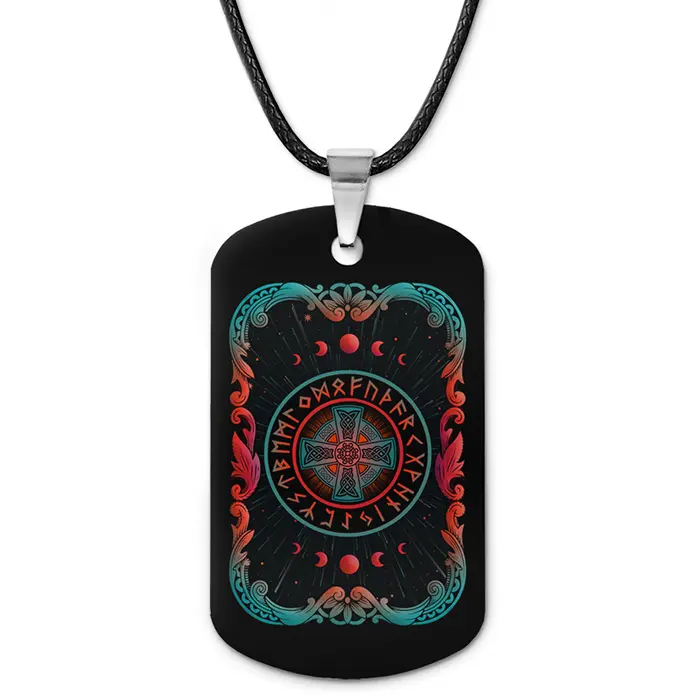 Кулон-жетон с изображением Кельтского креста. Двухсторонний дизайн с цветным изображением.