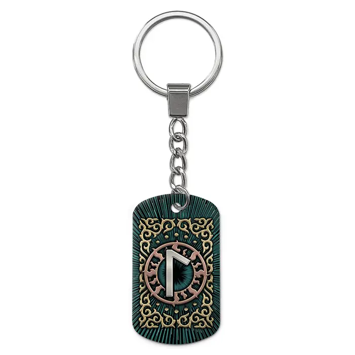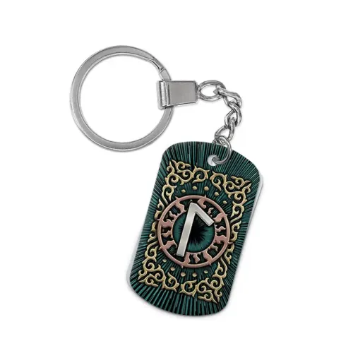 Брелок-жетон сувенирный с изображением руны. Материал — алюминиевый сплав, дизайн — двухсторонний с цветной печатью.
