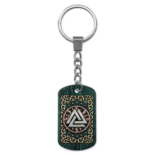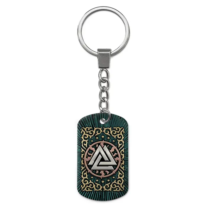 Брелок-жетон из алюминиевого сплава с двусторонним цветным изображением символа Валькнут.