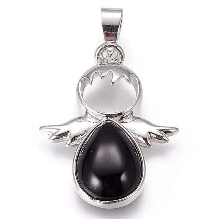 Кулон Ангел-хранитель, черный агат BJK009-BA
