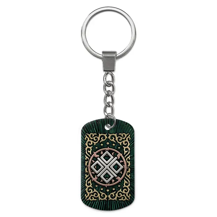 Двухсторонний брелок-жетон из алюминиевого сплава с изображением символа богини Макошь.