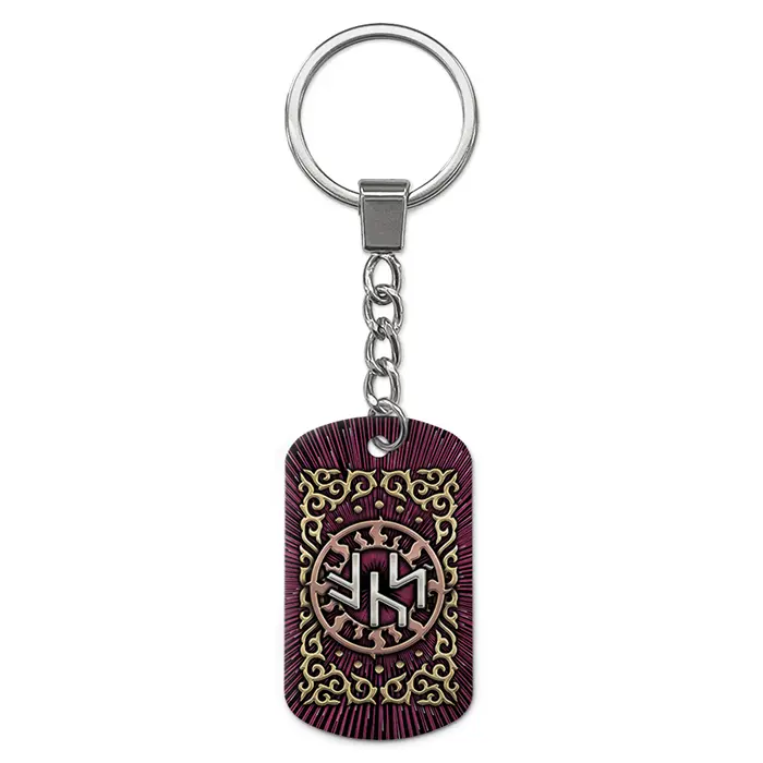 Брелок-жетон из алюминиевого сплава с двусторонним цветным изображением славянских рун.