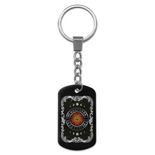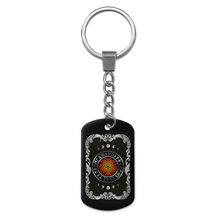 Брелок-жетон из алюминиевого сплава с двусторонним цветным изображением пентаграммы.