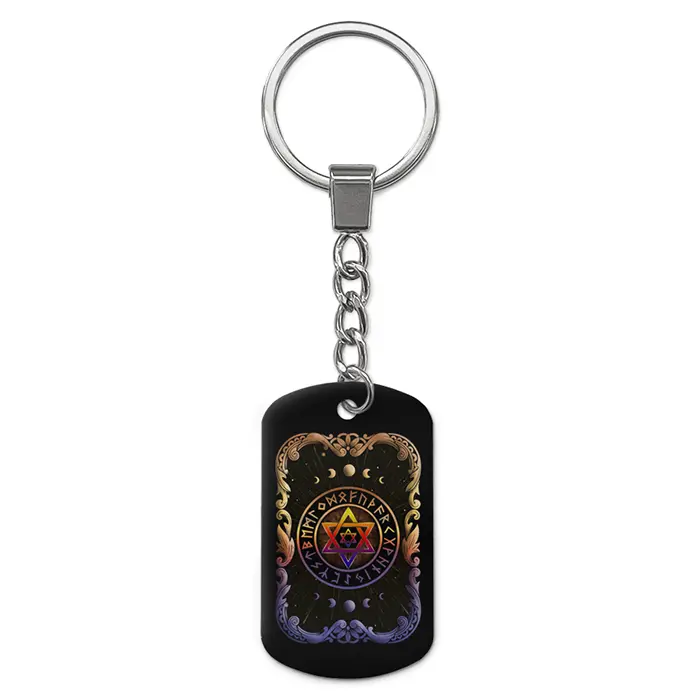 Брелок-жетон с двусторонним изображением Звезды Давида, выполненный из алюминиевого сплава.