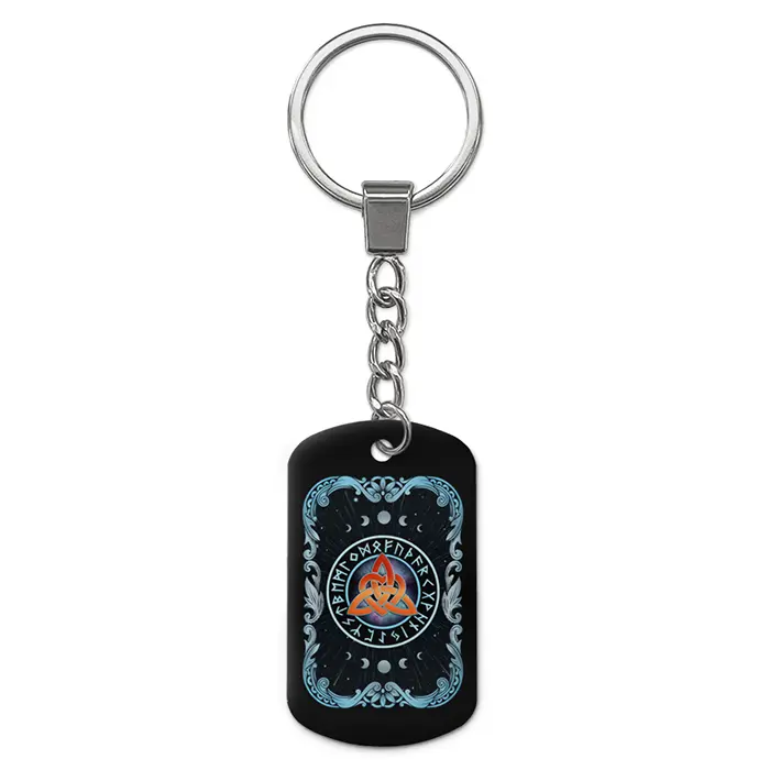 Брелок-жетон с двухсторонним цветным изображением кельтского узла, выполненный из алюминиевого сплава.