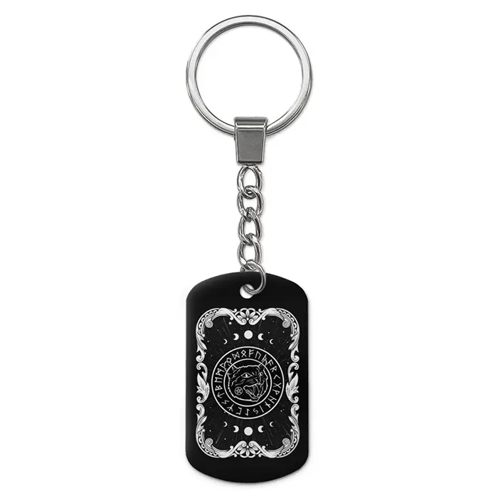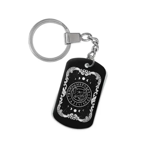 Брелок-жетон из алюминиевого сплава с двухсторонним цветным изображением черного кота.