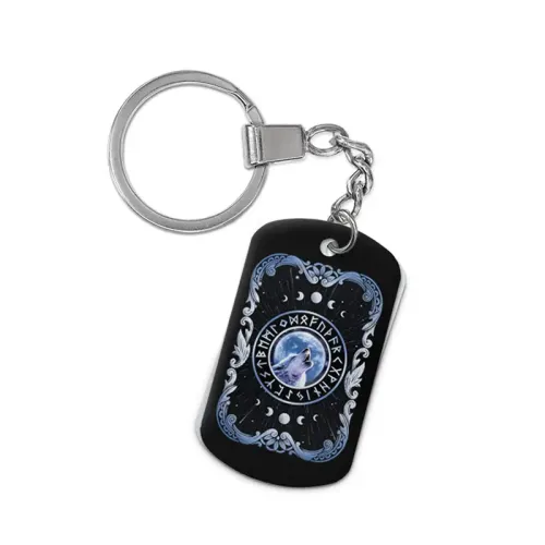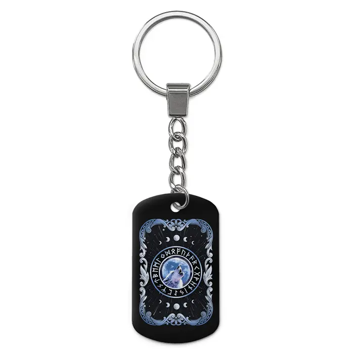Двухсторонний брелок-жетон с изображением волка из алюминиевого сплава.