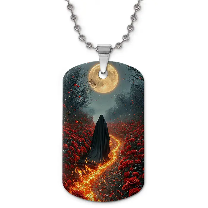 Кулон-жетон с двухсторонним цветным изображением полнолуния, изготовленный из алюминиевого сплава.