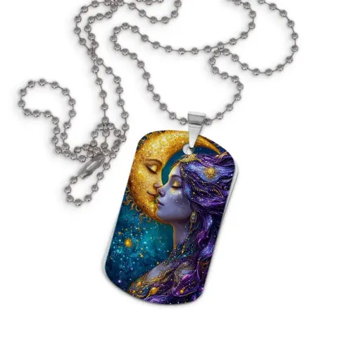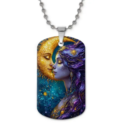 Кулон-жетон «Девушка и полумесяц» — двухсторонний аксессуар из алюминиевого сплава с цветным изображением.