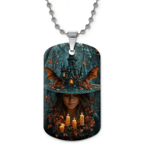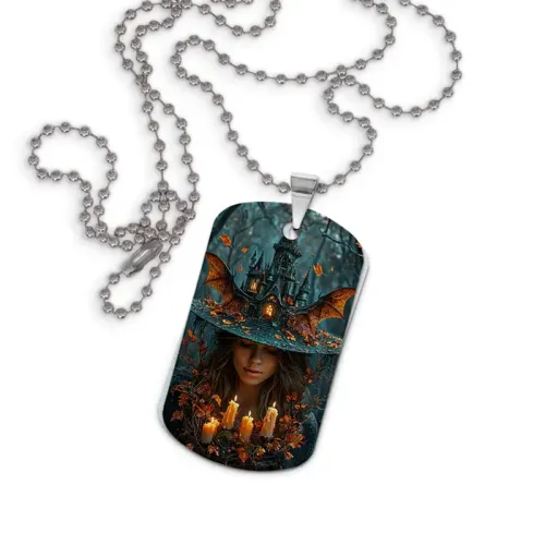 Двухсторонний кулон-жетон с цветным изображением, выполненный из алюминиевого сплава.