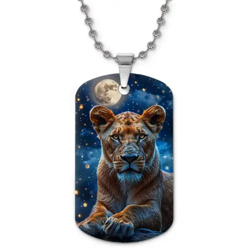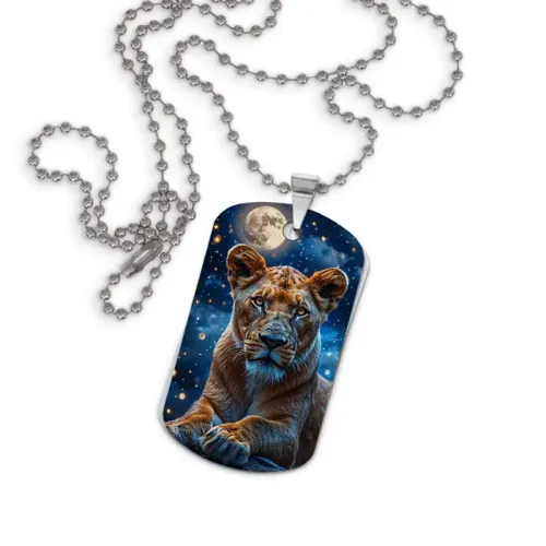 Кулон-жетон из алюминиевого сплава с двухсторонним изображением льва.