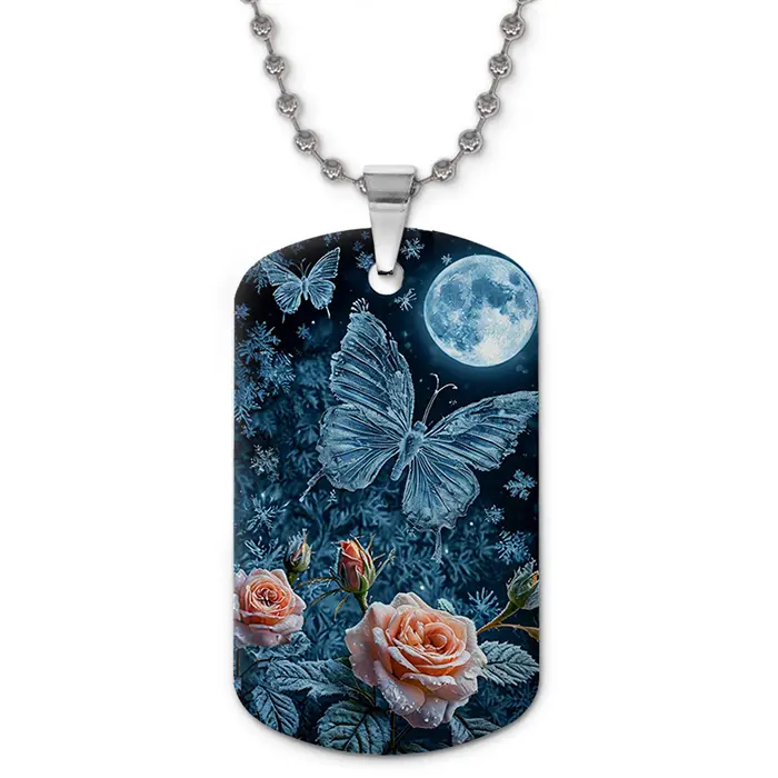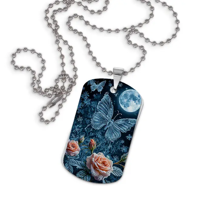 Кулон-жетон «Бабочка полнолуние» — двухсторонний аксессуар из алюминиевого сплава с цветным изображением.