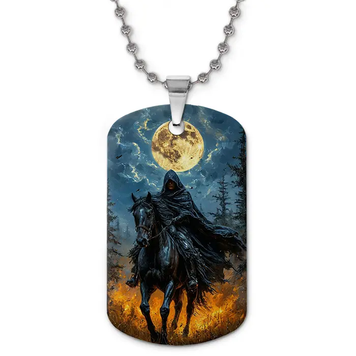 Двухсторонний кулон-жетон из алюминиевого сплава с цветным изображением.