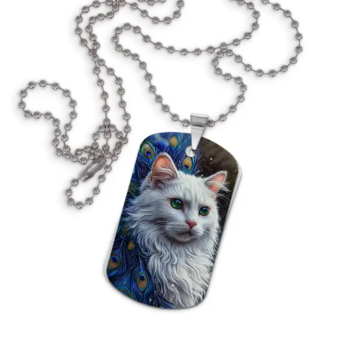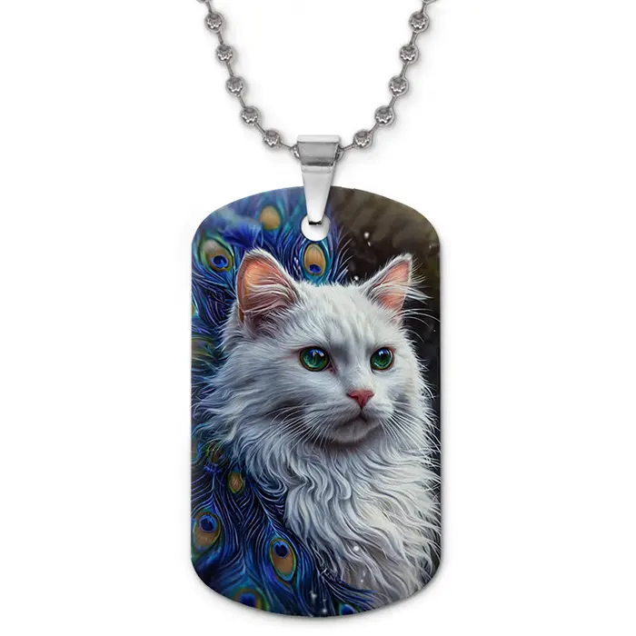 Кулон-жетон «Белая кошка» — сувенирный аксессуар из алюминиевого сплава с двусторонним цветным изображением.