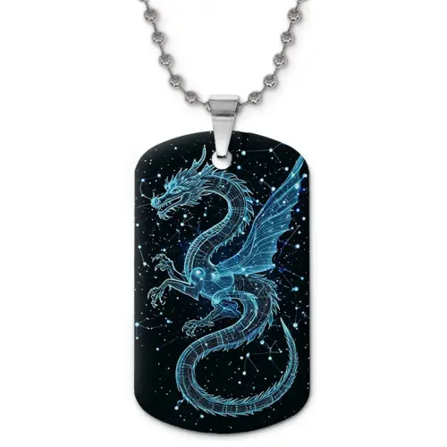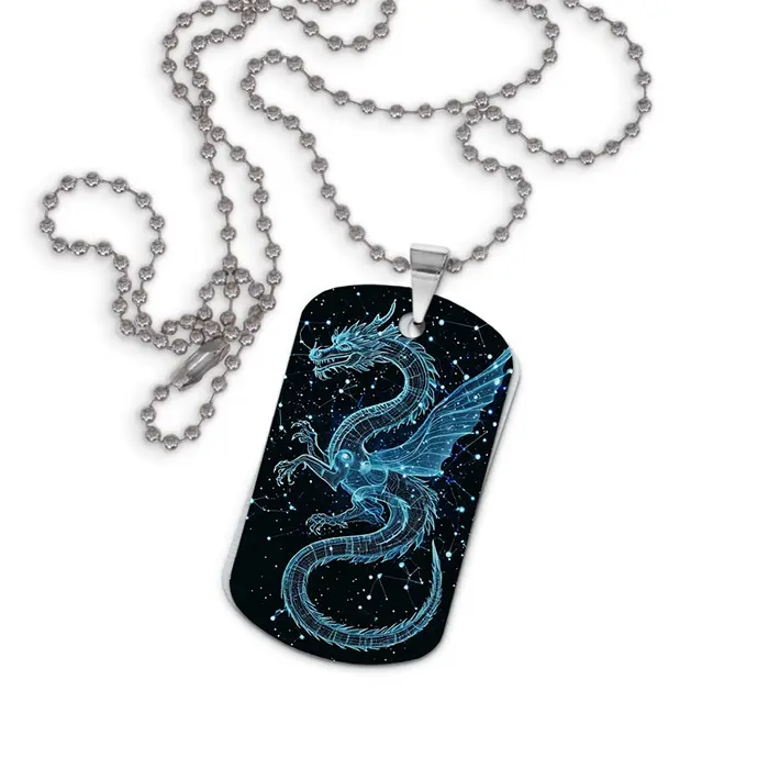 Двухсторонний кулон-жетон из алюминиевого сплава с цветным изображением дракона.