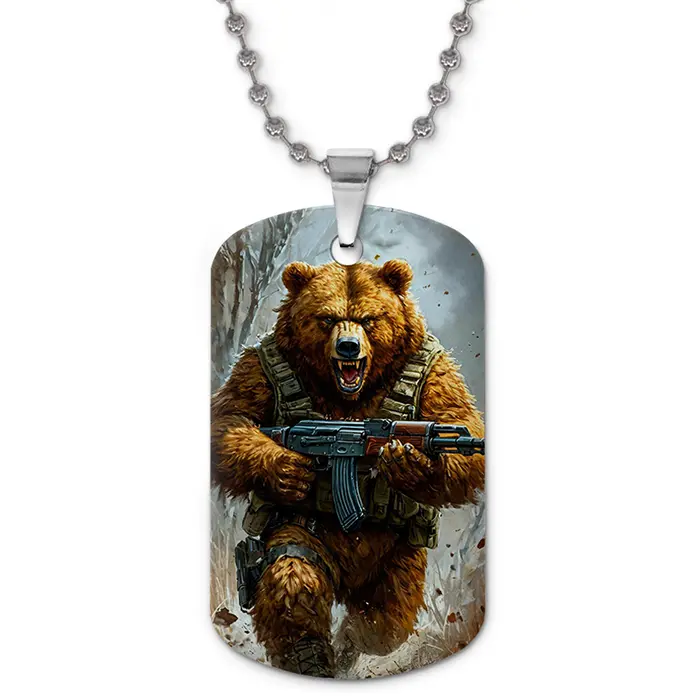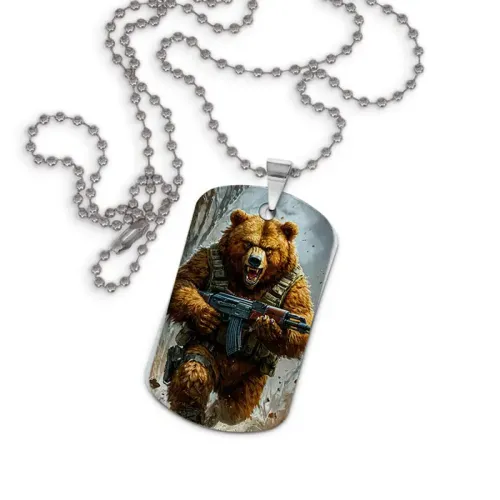 Кулон-жетон Медведь с автоматом ZHC-0052