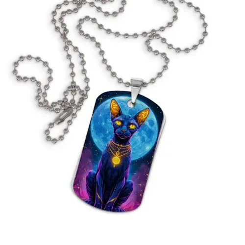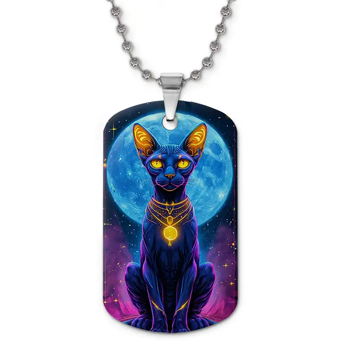 Кулон-жетон из алюминиевого сплава с изображением кота сфинкса.