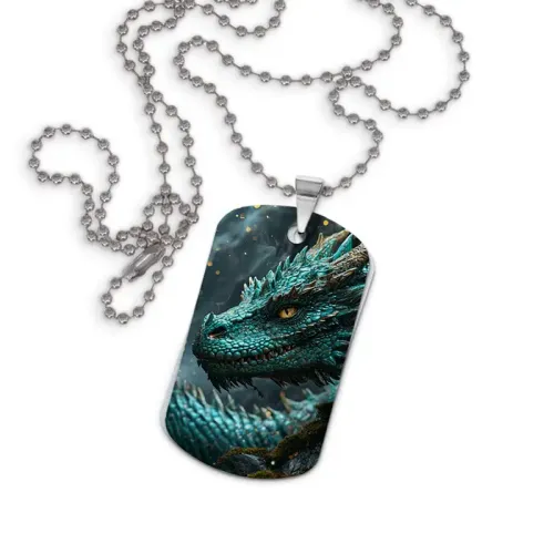 Двухсторонний кулон-жетон с изображением дракона. Изготовлен из алюминиевого сплава.