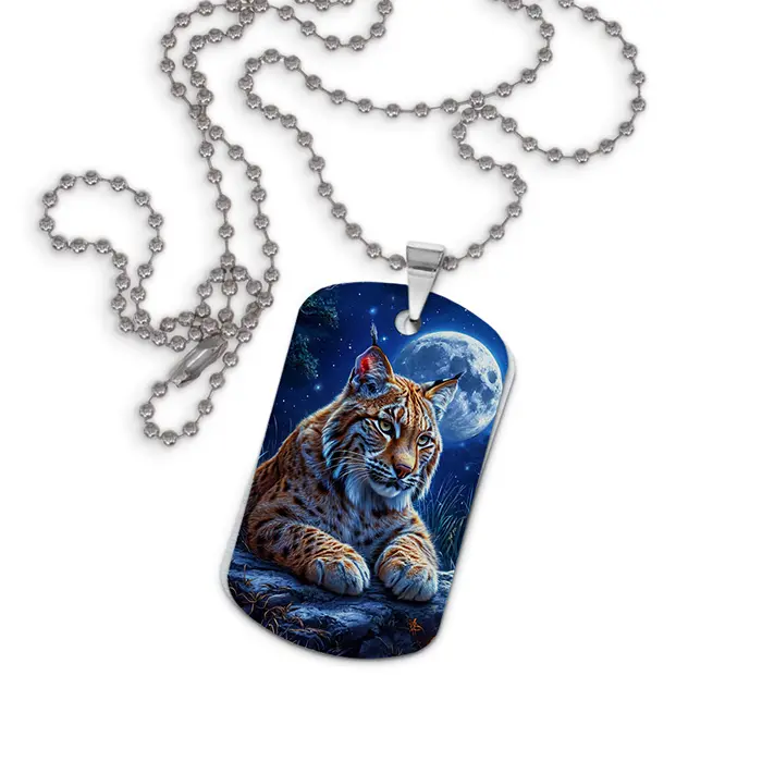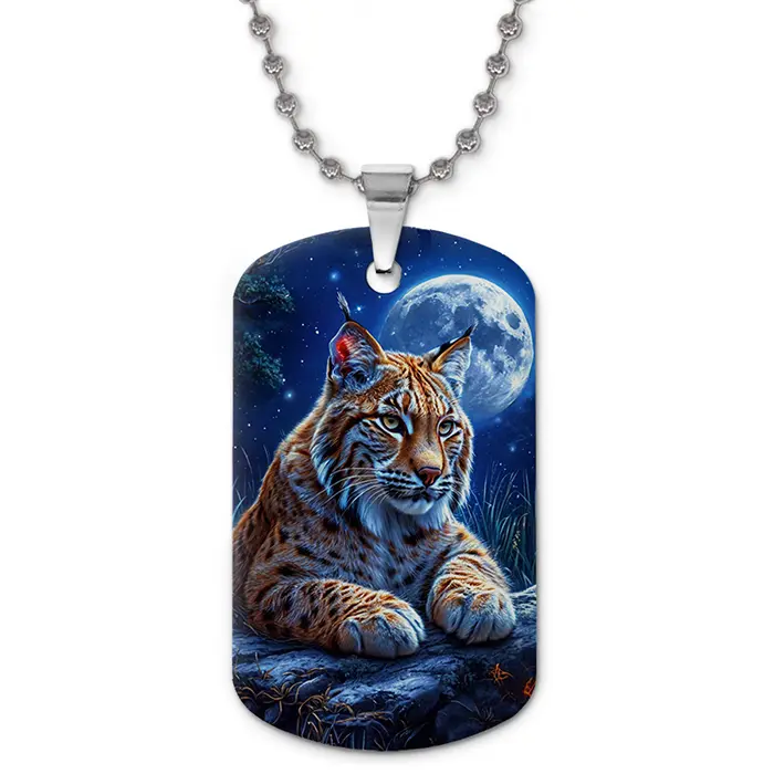 Сувенирный кулон-жетон с двухсторонним изображением рыси из алюминиевого сплава.