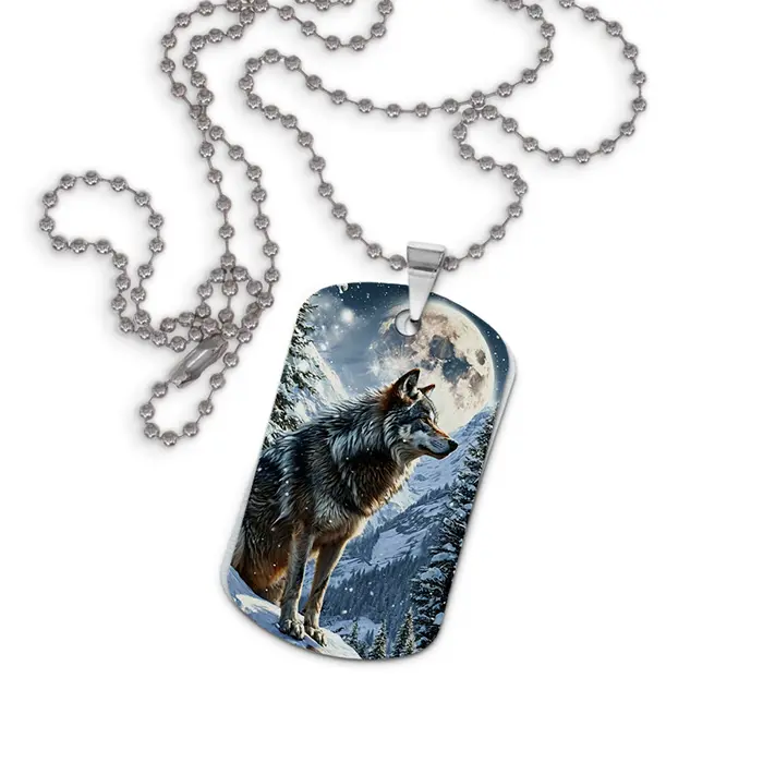 Кулон-жетон из алюминиевого сплава с двухсторонним цветным изображением.