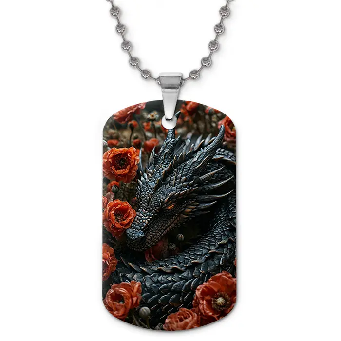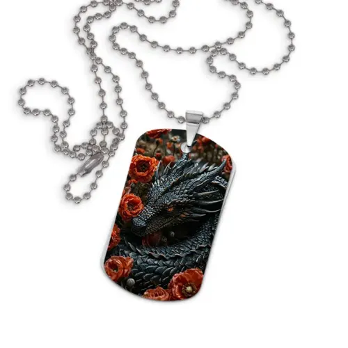 Кулон-жетон из алюминиевого сплава с двухсторонним изображением дракона и роз.
