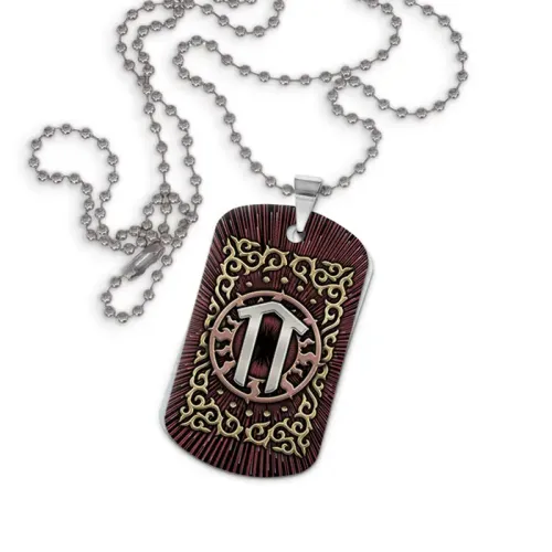 Кулон-жетон из алюминиевого сплава с двухсторонним цветным изображением славянской руны.