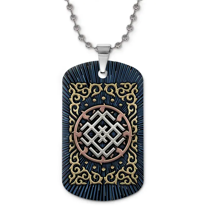 Двухсторонний кулон-жетон из алюминиевого сплава с цветным изображением символа Белобога.