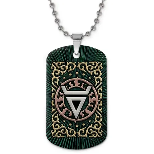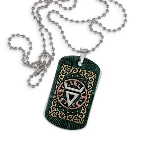 Двухсторонний кулон-жетон с цветным изображением символа Велеса из алюминиевого сплава.